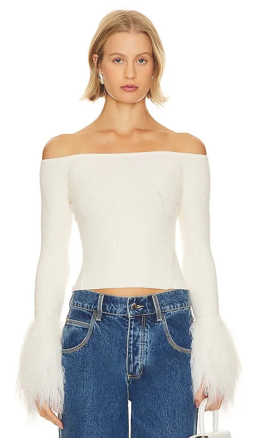 Free People Marilyn Top in Ivory. - size L (also in M, S, XL, XS) Free People Marilyn Top in Ivory. - size L (also in M, S, XL, XS) Elevate your sweater collection with the Free People Marilyn Top in Ivory. This chic knit features a sculpted-rib design, off-the-shoulder sleeves, and a playful twist with a froth of faux feathers. The slim-fitting silhouette and feathered trim add rock-star glam to this abbreviated-length sweater, making it a standout piece that's anything but basic.. Self: 52% viscose 28% polyester Trim: 100% polyamide. Made in Macao. Hand wash. Off-shoulder styling. Ribbed knit fabric with feather trim. FREE-WS4532. OB1819484. Free People invokes a spirit of femininity and creativity. Throughout their line of sweaters, tees, dresses and more, each piece incorporates a high level of quality and originality that reflects their adventurous it girl. With all that's constricting in the world today, Free People says your clothes don't have to be. Be yourself, be creative, be free. Shop the latest in fashion from Free People